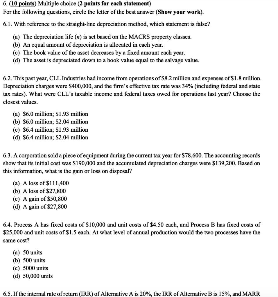 Solved 6 10 Points Multiple Choice 2 Points For Each Chegg Com